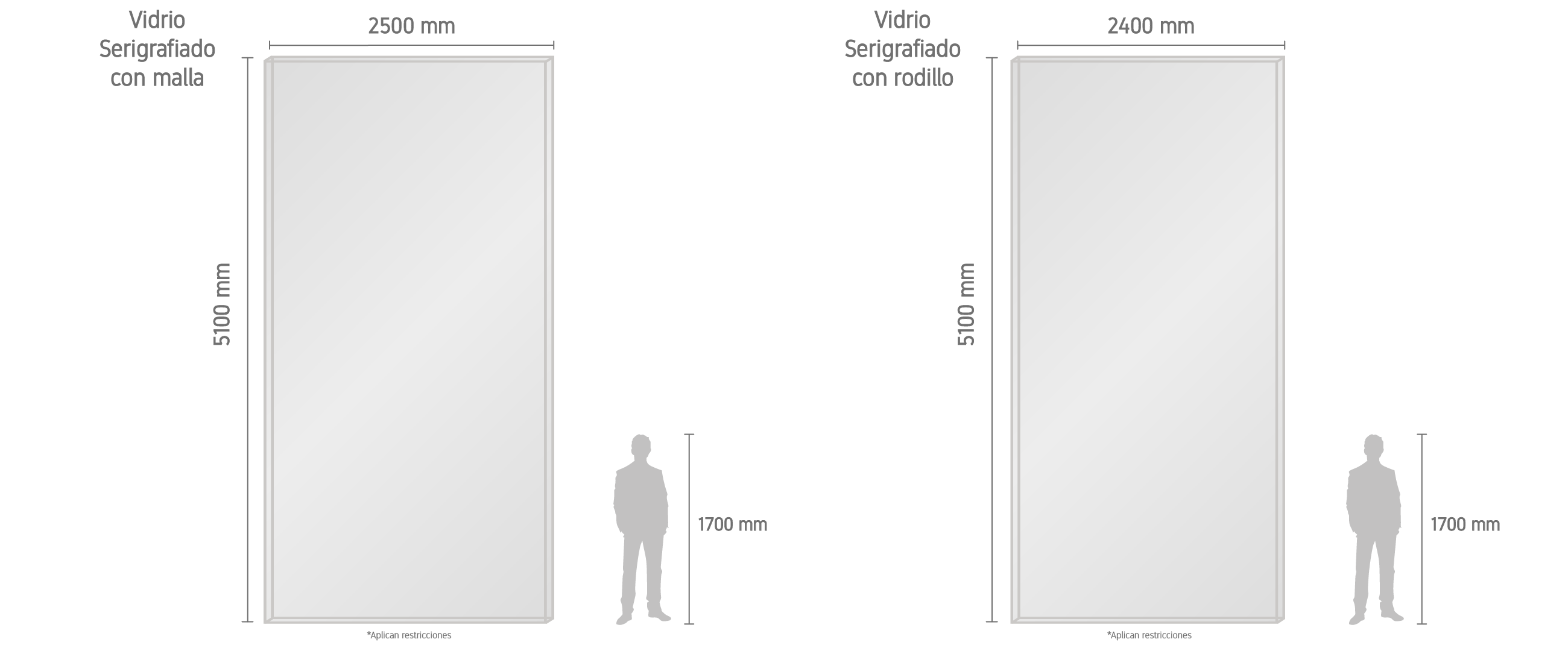 Nuestras medidas máximas de vidrio son: